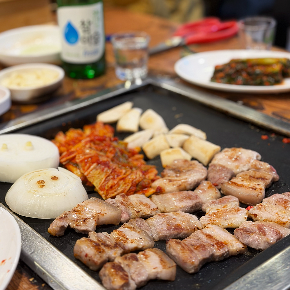 ์กํ๊ตฌ์์ ๋ง์๋ ์ผ๊ฒน์ด์ง ํ๋ฉด ์ถ์ฒํ ๋งํ ์๋น ์ฐ๋ฆฌ์ ์ก์ ์๋น์ด์์. ์ด๊ณณ์ ํ์ฐ์ ์ํ์ง๋ง ์ทจ๊ธํ๋๋ฐ, ๊ณ ๊ธฐ ์์ฒด๊ฐ ์ ์ ํ๊ณ ์ง์ด ์ข์ ํฌ์ฅํด ๊ฐ์๋ ๋ถ๋ค๋ ๋ง๋๋ผ๊ณ ์. ๋ํผํ๊ฒ ์ฐ๋ฆฐ ์ผ๊ฒน์ด๊ณผ ์ค๊ฒน์ด์ ์ง๋ฐฉ๊ณผ ์ด์ฝ๊ธฐ ๋น์จ์ด ๊ธฐ๊ฐ ๋งํ์. ๋ถํ ์์์ ์ง๊ธ์ง๊ธ ๊ตฝ๋ค๊ฐ ์ ๋นํ ์ต์ ๊น์น๋ ํจ๊ป ๊ตฌ์์ค๋๋ค. ๋ชจ๋ ํ