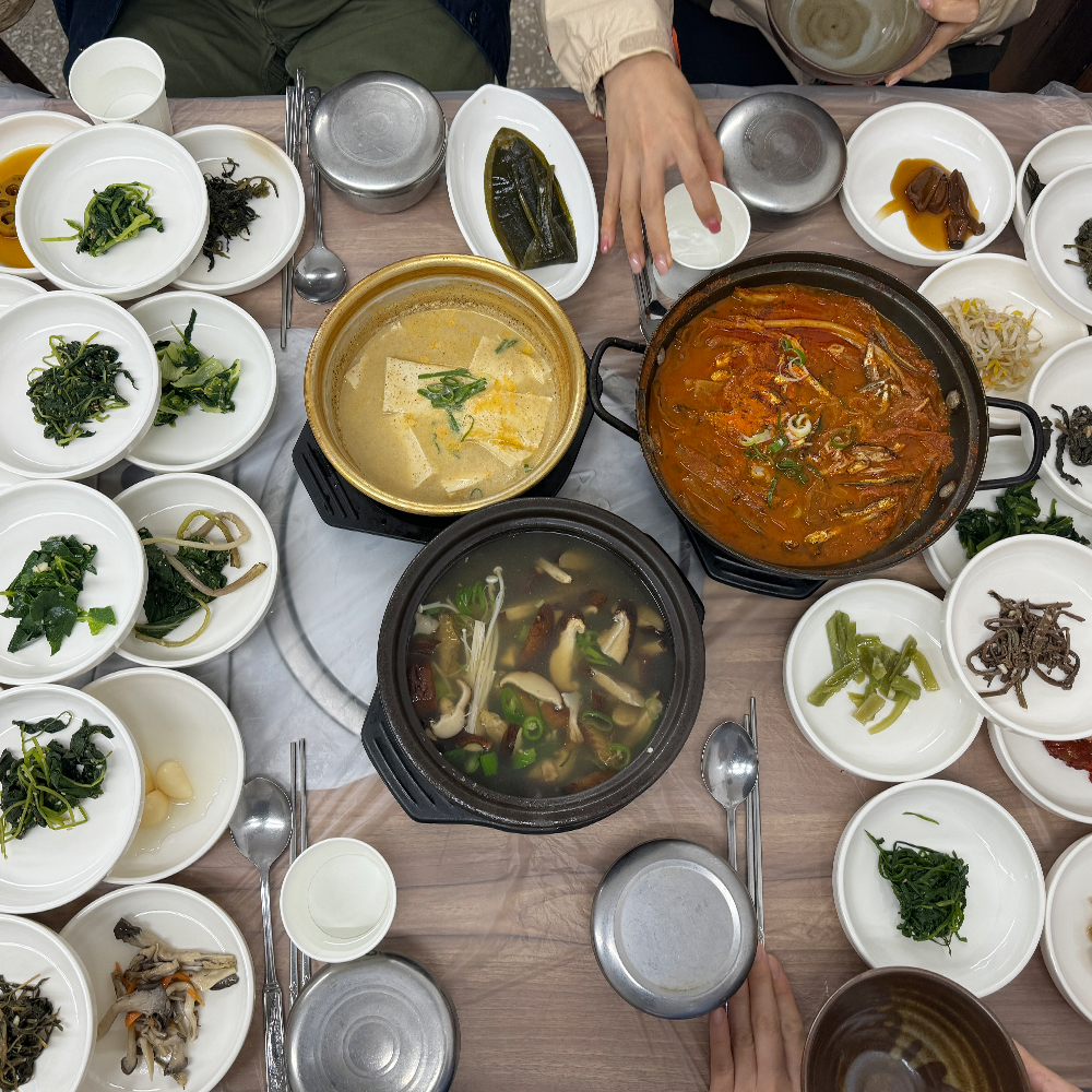 ๋ฐ์ฐฌ์ด ๋๋ฌด ๋ง์์ ๊ทธ๋ฆ์ ๊ฒน์ณ์ ์ฃผ๋ ๋ชจ์ต์ ๋ณด์ ์ ์์ผ์ ๊ฐ์? 12,000์์ ์ฐ์ฑ ๋ฐฑ๋ฐ์ ์ฃผ๋ฌธํ๋ฉด 20๊ฐ์ง ์ด์์ ๋ฐ์ฐฌ๊ณผ ๋ฒ์ฏ ๋ถ์๊ตญ, ๋ฌต์์ง ๊น์น์ฐ๊ฐ๊ฐ ํ ์ ์ฐจ๋ฆผ์ผ๋ก ๋์์. ์ด๊ณณ์ ์ง๋ฆฌ์ฐ ๋ฑ์ฌ๊ณจ ๊ณ๊ณก ์ธ๊ทผ์ ์๋ ์ง๋ฆฌ์ฐ์ฐ์ฑ์๋น์